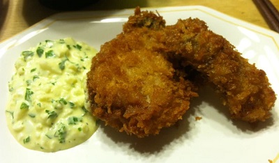 We enjoy oysters. Well…my husband, my mom and I do. My sister’s learned to like them over the years and dad still doesn’t eat them. At home, we like to make fried oysters. This is a home recipe for fried oysters and tartar sauce the way grandma made it. Make sure you buy fresh ones from a fish market or from a grocery store that you trust!